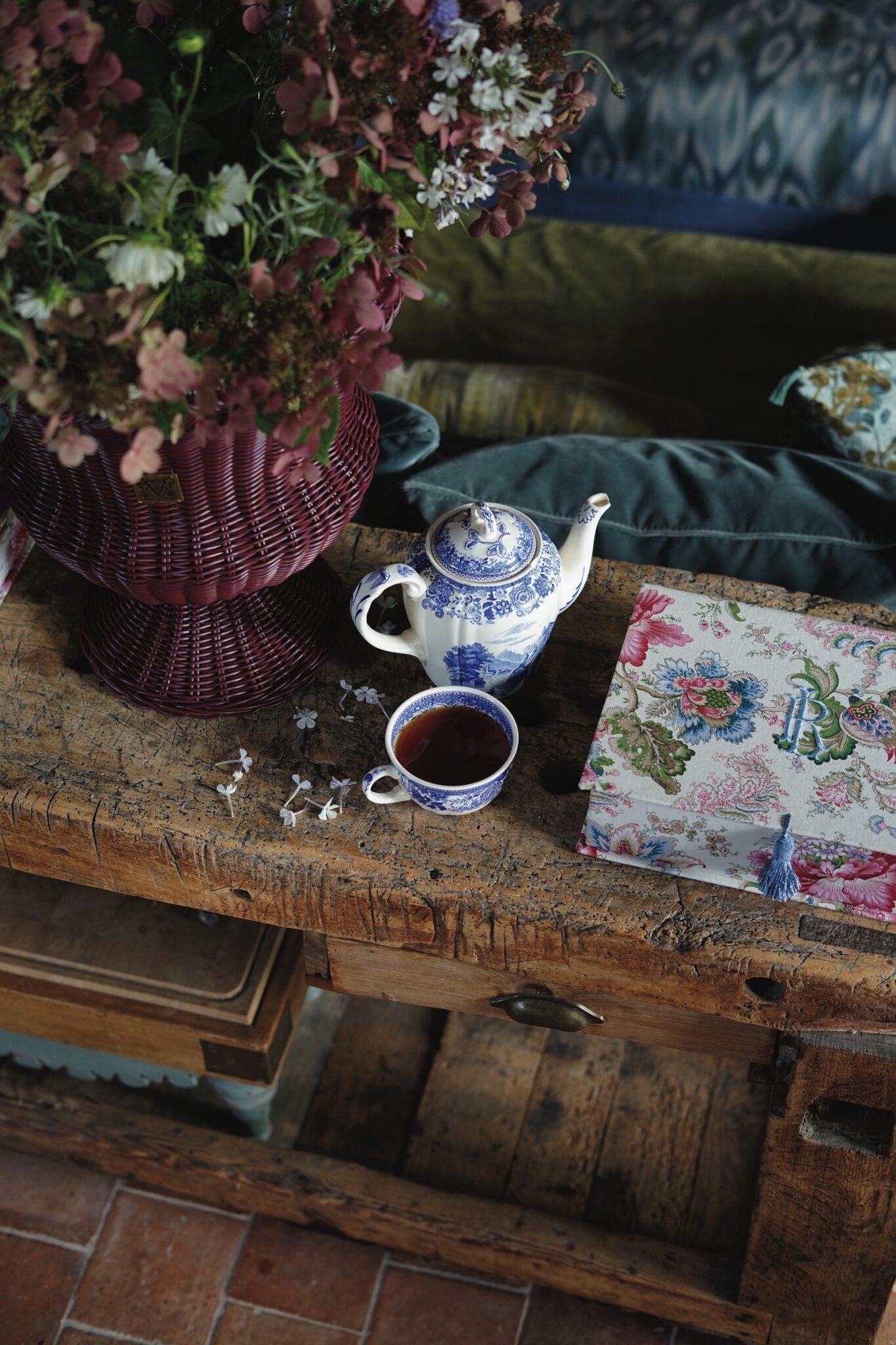Ces pièces domestiques sont le fruit du temps passé au sein de cette maison. C’est une collection d’objets qui inspire à un quotidien romantique, empreint de raffinement et de délicatesse. J’ai choisi les tissus, imaginé les détails, matières et un atelier de confection artisanale me suit dans le développement de chaque pièce. La première collection se compose d’une corbeille, d’une boîte à thé, d’une boîte à courrier, d’une boîte à mouchoirs et d’un carnet de notes. Chaque objet a été pensé pour se réinventer au fil du temps : la corbeille accueille vos plus belles fleurs ou magazines, la boîte à thé se transforme en écrin à bijoux… Et parce que je souhaite que chaque création ne ressemble qu’à son propriétaire, il est possible de l’habiller d’un monogramme brodé, comme un sceau intime. Je souhaite que ce projet grandisse et que ces pièces poétiques puissent, pourquoi pas, se retrouver dans les intérieurs de ceux et celles qui aiment l’art de vivre.
